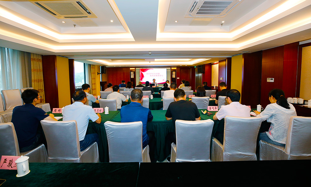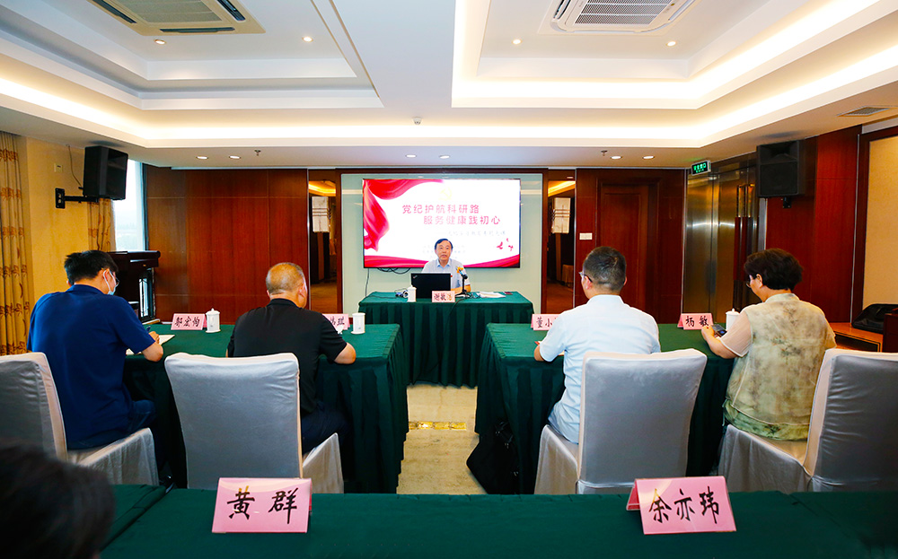 6月21日下午,在健康管理中心迎暉廳,所黨委書記、所長謝敏浩以《黨紀護航科研路 服務健康踐初心》為題,為全所中層及以上干部、部分課題組長講授黨紀學習教育專題黨課,省衛生健康委機關黨委、機關紀委董小林同志列席。