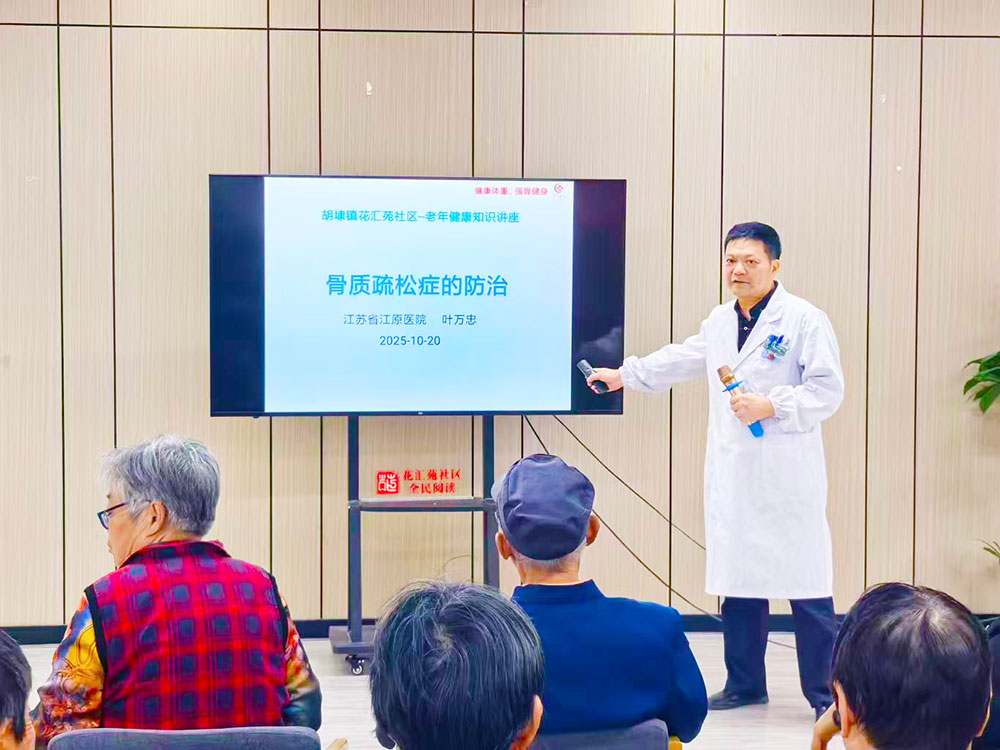 在胡埭社區(qū)衛(wèi)生服務中心(花匯苑社區(qū)幸福家園)活動現(xiàn)場,骨質疏松科葉萬忠主任以《原發(fā)性骨質疏松癥的診療》為題開展科普講座,用通俗易懂的語言從病因、危害、預防措施到治療方法,系統(tǒng)講解骨質疏松癥相關知識,現(xiàn)場互動頻繁、氣氛活躍。講座結束后,4位骨質疏松科專家組成咨詢團隊,為有需求的居民提供一對一免費健康咨詢,針對腰背疼痛緩解、規(guī)范用藥指導、康復訓練方案等問題耐心解答,并結合居民身體狀況給出個性化防治建議。同時,考慮到骨密度檢測是早期發(fā)現(xiàn)骨質疏松風險的關鍵,專家們還為骨質疏松高危風險的居民發(fā)放免費骨密度篩查券,引導大家通過科學檢測了解自身骨量情況,提前規(guī)避疾病風險。此次社區(qū)服務為居民提供了專業(yè)的健康指導,獲得現(xiàn)場群眾一致好評。