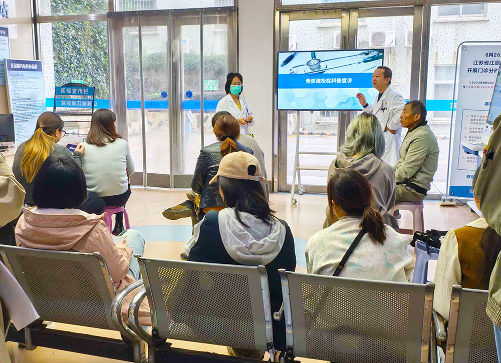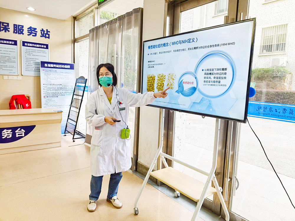 在江原醫(yī)院門診大廳,內分泌科潘懿副主任醫(yī)師開展了《骨質疏松癥的科普宣講》移動宣教活動。她圍繞骨質疏松癥的典型癥狀、科學診斷方法、規(guī)范治療原則及風險評估標準,為現(xiàn)場候診患者及家屬近距離講解健康知識。院內移動宣教將健康科普靈活地融入就醫(yī)場景,既提升了信息傳播的精準度,又改善了患者及家屬的就醫(yī)體驗。