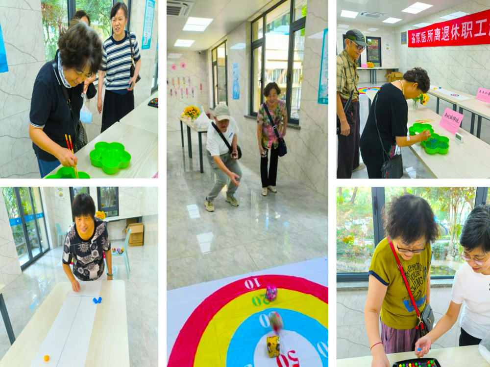 體檢結束后,老同志們來到退休職工活動室,興趣盎然地參加趣味運動會,運動會現場歡聲笑語不斷,活力滿滿。