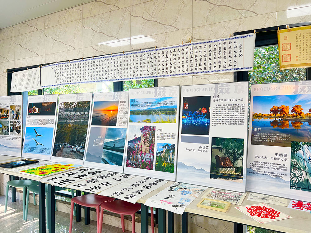 展示現場,一幅幅書畫作品掛滿了墻壁,里面有蒼勁有力的書法作品,也有傳統的水墨山水畫,還有現代抽象油畫……每一種風格和題材都表達出獨特的藝術語言。攝影作品則是記錄著自然界的壯麗景色、工作生活中的點滴與美好瞬間。觀展職工們在這些題材廣泛、風格多樣的作品前流連忘返,與同伴熱烈討論,分享彼此對作品的感悟見解,贊嘆同事們的藝術才華和創作水準。
